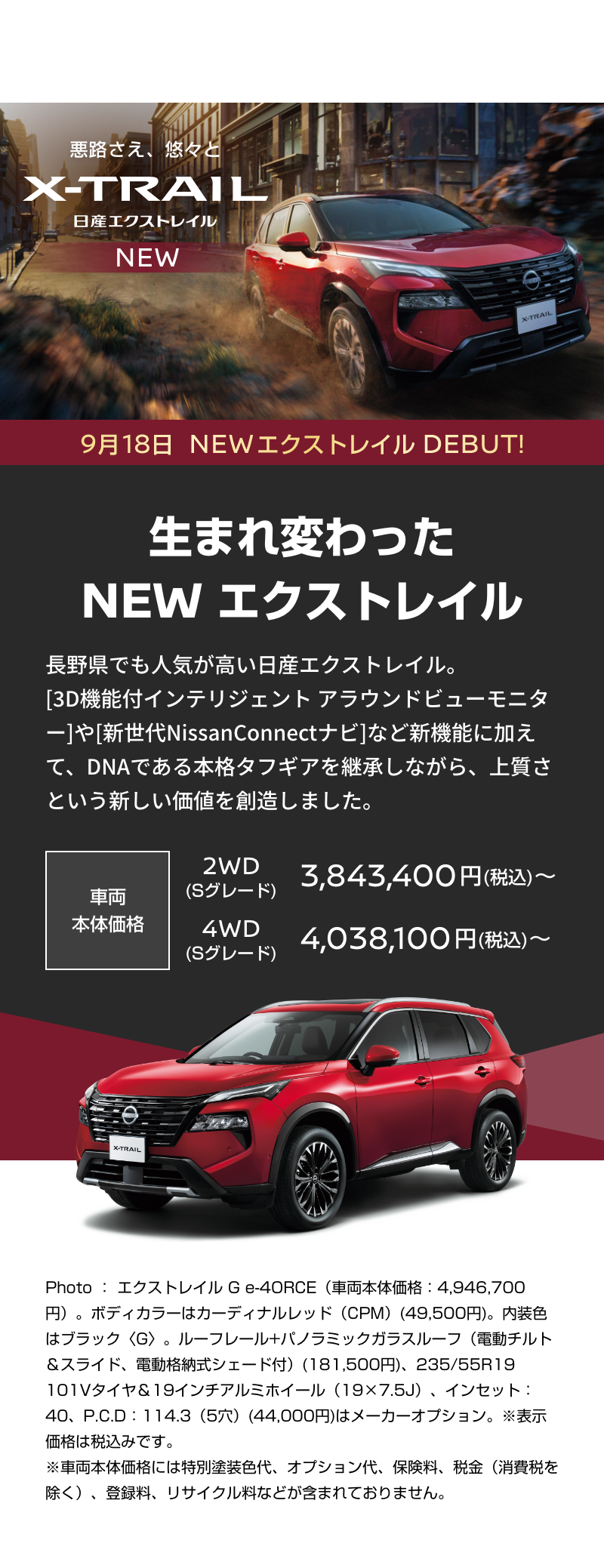 日産SUVは長野日産・サティオ松本へ 見逃せない!日産SUV情報